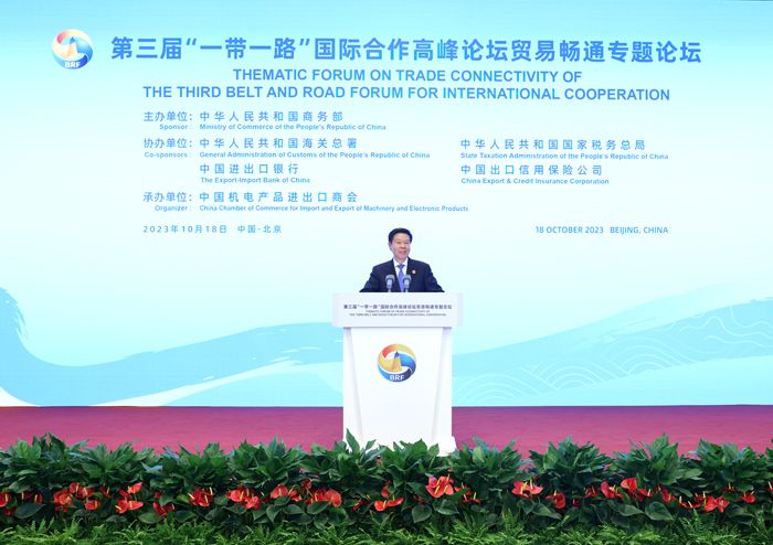今天上午,習(xí)近平主席在開幕式上發(fā)表主旨演講,回顧了過去十年共建“一帶一路”的精彩歷程和寶貴經(jīng)驗(yàn),宣布了下一步中國支持高質(zhì)量共建“一帶一路”的八項(xiàng)行動(dòng),提出了未來合作的新愿景,描繪了開放共贏的新藍(lán)圖。剛才,何立峰副總理及各位來賓在演講中回顧了共同推進(jìn)貿(mào)易暢通取得的積極成效,提出了促進(jìn)今后深化合作的考慮建議。十年碩果令人贊嘆,未來美景令人神往。我相信,在本次高峰論壇的推動(dòng)下,在大家的共同努力下,共建“一帶一路”必將煥發(fā)更加旺盛的活力,必將迎來更加美好的未來,必將為世界經(jīng)濟(jì)發(fā)展注入更加強(qiáng)大的動(dòng)力。